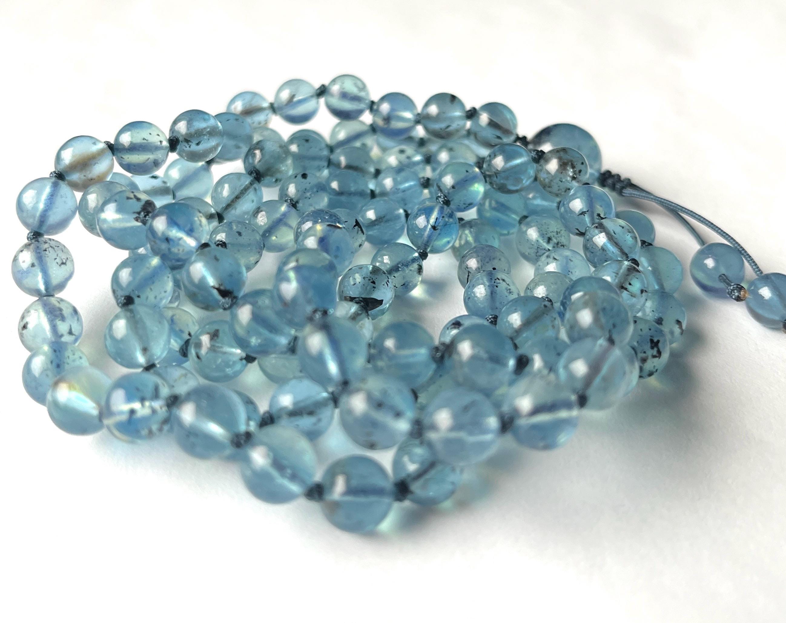 Please be gentle with your mala. Bathing, swimming, or partaking in any vigorous activity may lead to a breakage or damage of your mala. please keep in mind that frequent over stretching will weaken the thread overtime and may damage your mala.
