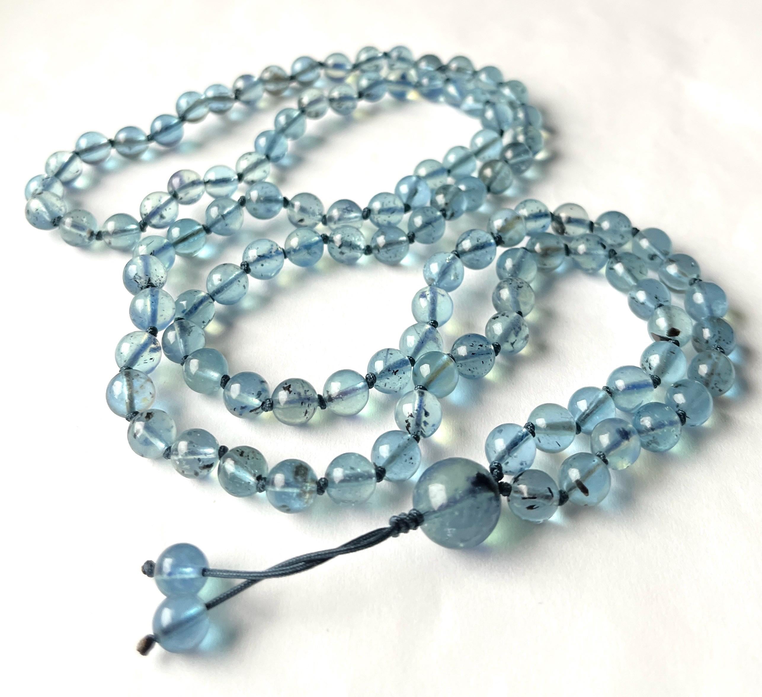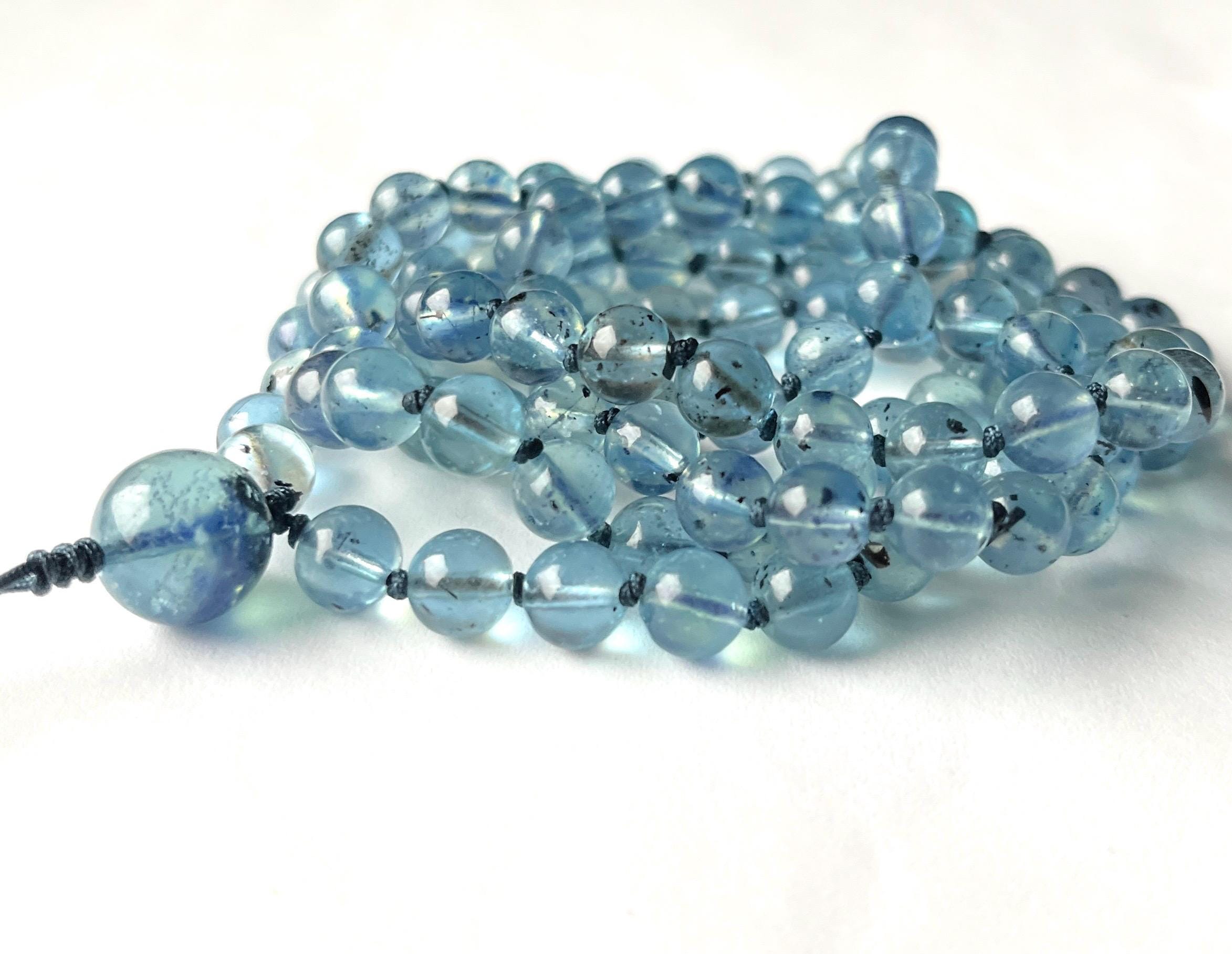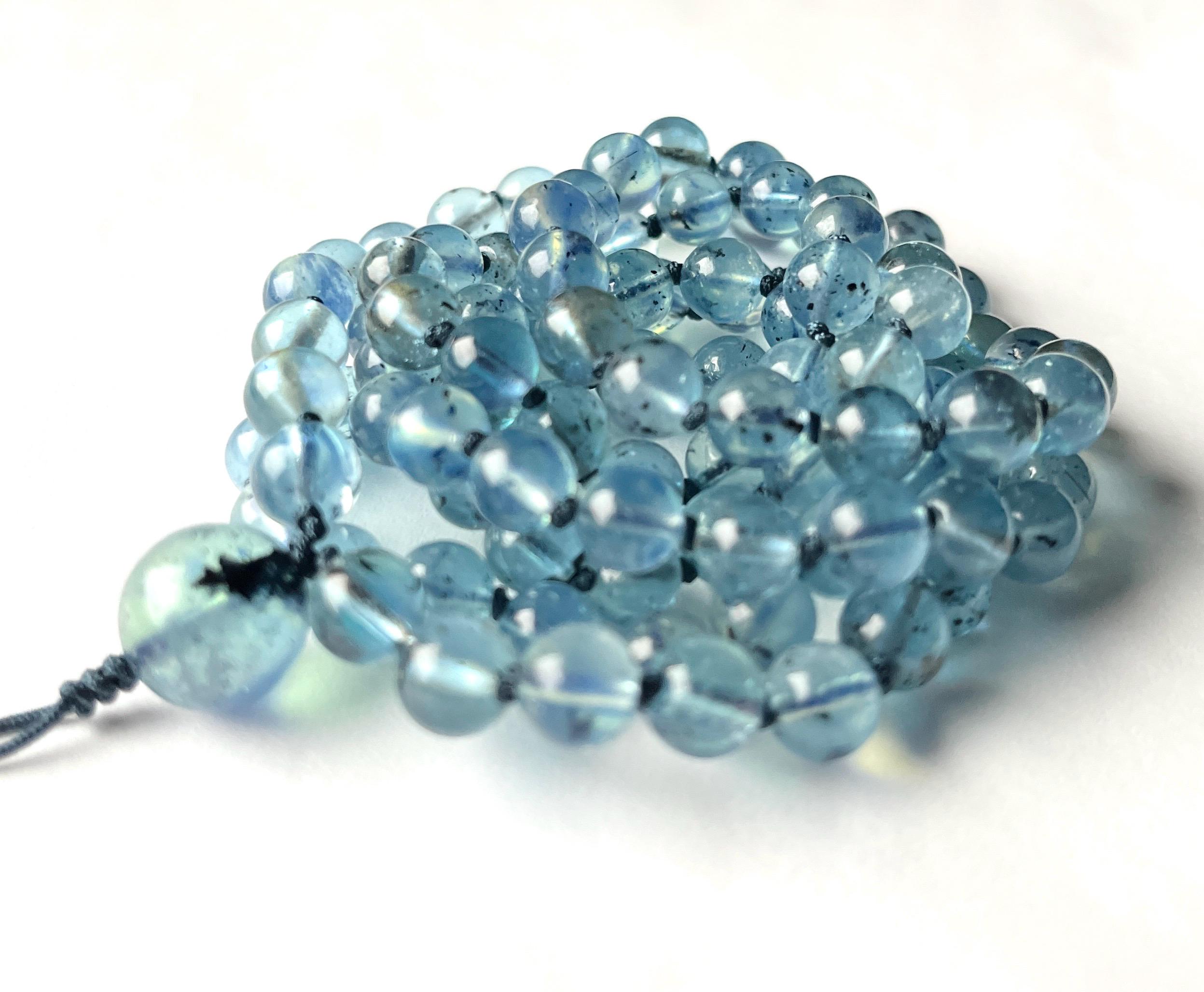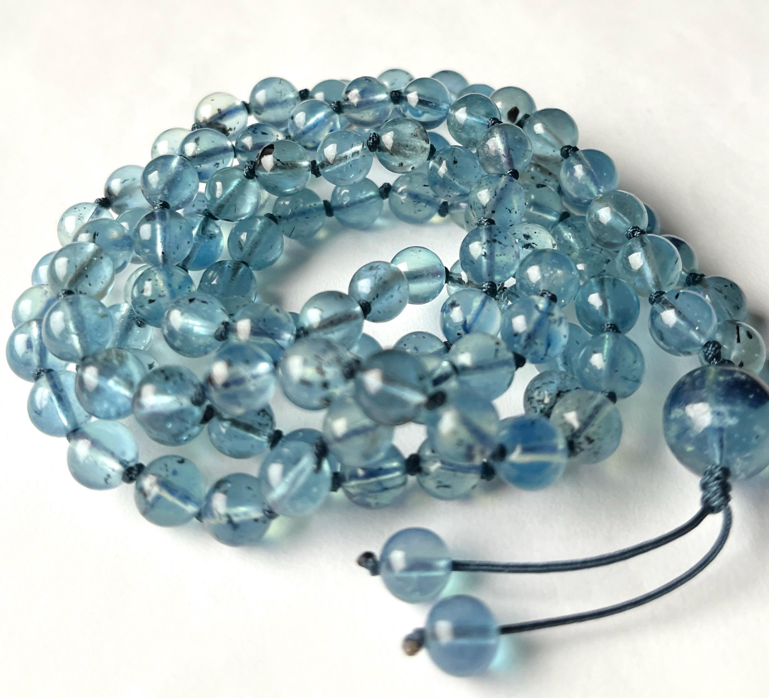 Regular cleansing of your semiprecious stone mala is recommended. Gemstones absorb negative energy well and could also transmit the negativity back if they become saturated. To remove any unwanted energy, leave your mala in moon or sunlight, let it rest under a tree, using sound vibration to clear your crystals such as religion or meditation music.