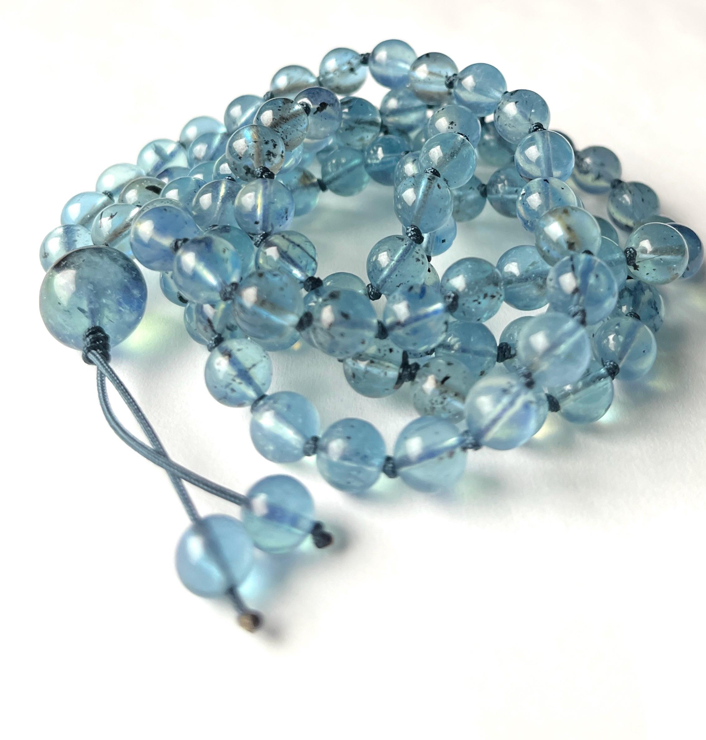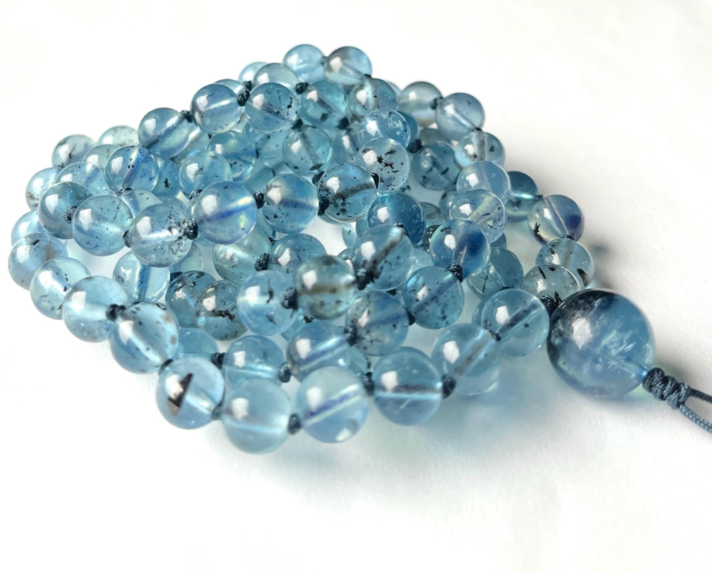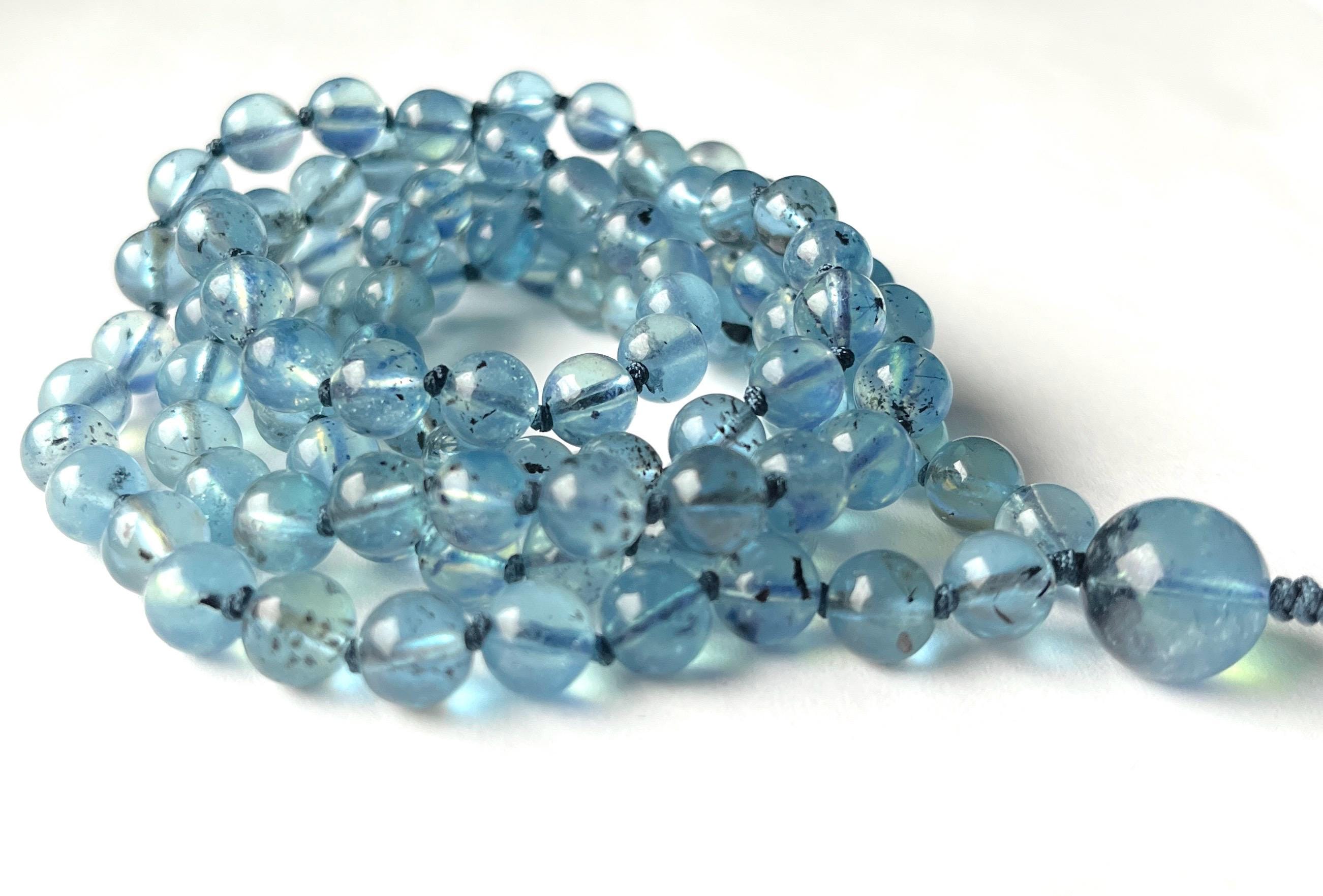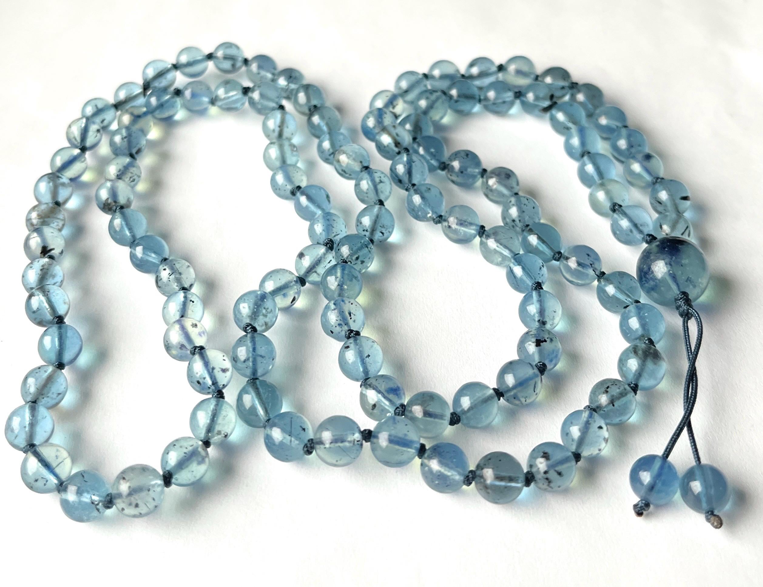 Regular cleansing of your semiprecious stone mala is recommended. Gemstones absorb negative energy well and could also transmit the negativity back if they become saturated. To remove any unwanted energy, leave your mala in moon or sunlight, let it rest under a tree, using sound vibration to clear your crystals such as religion or meditation music.